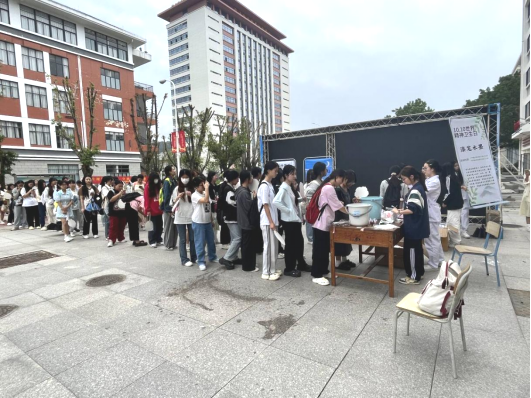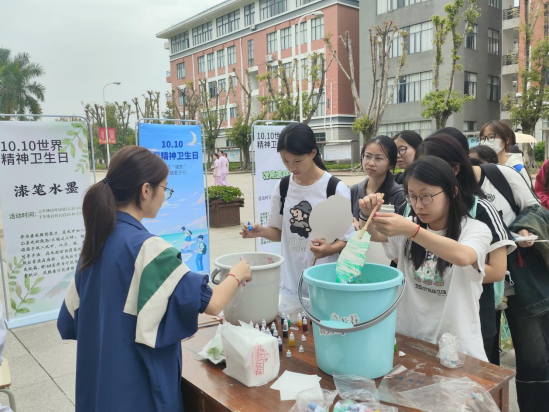 在本次活動中,同學們仿佛進入了五彩斑斕的創意世界。挑選自己喜歡的三種顏色并將其滴入水中,隨后把扇子輕浸入水,手持畫筆,在扇面上舞動,這是一場色彩的舞蹈。緊接著靈巧地運用“點、甩、彈、劃”等獨特手法,繪出一個個鮮明的、別具一格的圖案。在此環節中,我們將收獲自己繪出的唯一之扇,收獲“10.10”最獨特的紀念品。