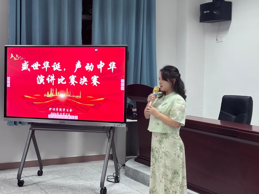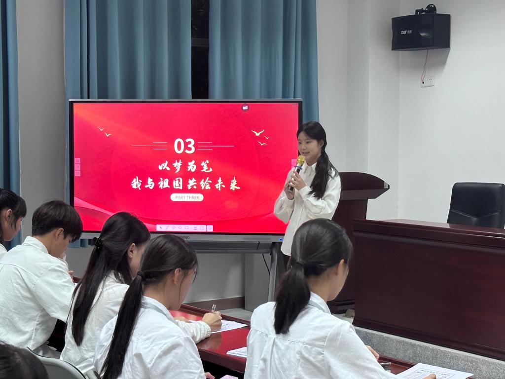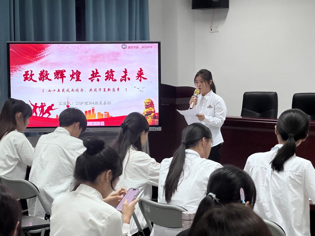 施琪同學回顧了祖國在革命戰爭年代的艱苦卓絕,歌頌了無數先烈們的英勇無畏;林燕萍同學描繪了祖國在建設時期的熱火朝天,贊美了勞動人民的勤勞智慧;吳嘉怡同學展示了祖國在新時代的蓬勃發展,抒發了對祖國未來的無限憧憬。