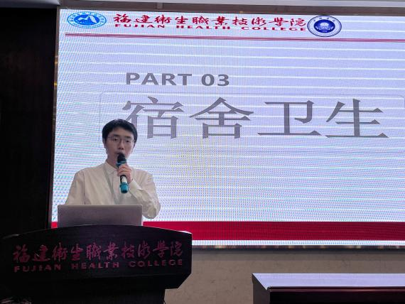 動員會上樂靜顏同學針對宿舍安全用電、個人財務和宿舍紀律方面做出了解讀和要求,林晟同學解讀了宿舍衛生的扣分細則以及介紹了護理學院六大主題宿舍的評選細則和評選時間。