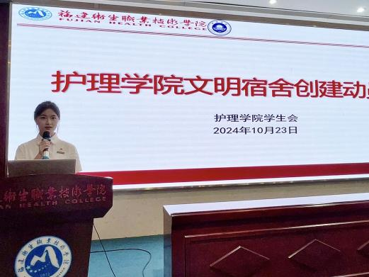 進一步增強學生安全意識,促進學生文明行為養成,推進“一站式”學生社區創建工作,營造整潔衛生、文明有序、安全和諧的宿舍文明。10月23日,護理學院召開“文明宿舍創建動員會”,會議到場的老師有護理學院黨委副書記林來元、護理學院團總支副書記陳梅欽、護理學院學生會工作人員及護理學院全體宿舍長參會。會議由護理學院沈欣潔同學主持。
