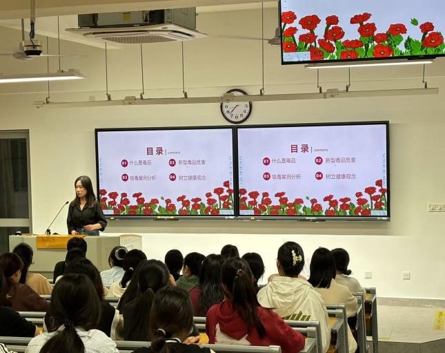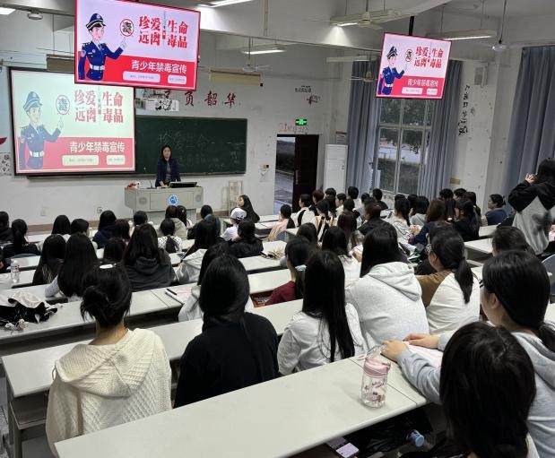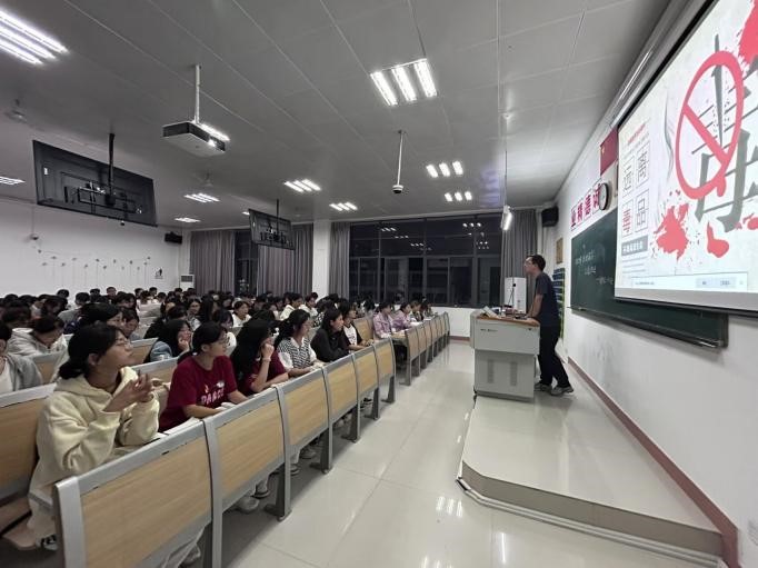 在班會上,輔導員老師首先向同學們通報了近期社會上發生的一系列涉毒案件,包括青少年因好奇嘗試毒品而深陷泥潭,依托咪酯、右美沙芬等麻精藥品以及“笑氣”等非列管成癮性物質的濫用問題等。通過這些真實案例的分享,同學們深刻認識到毒品的嚴重危害。