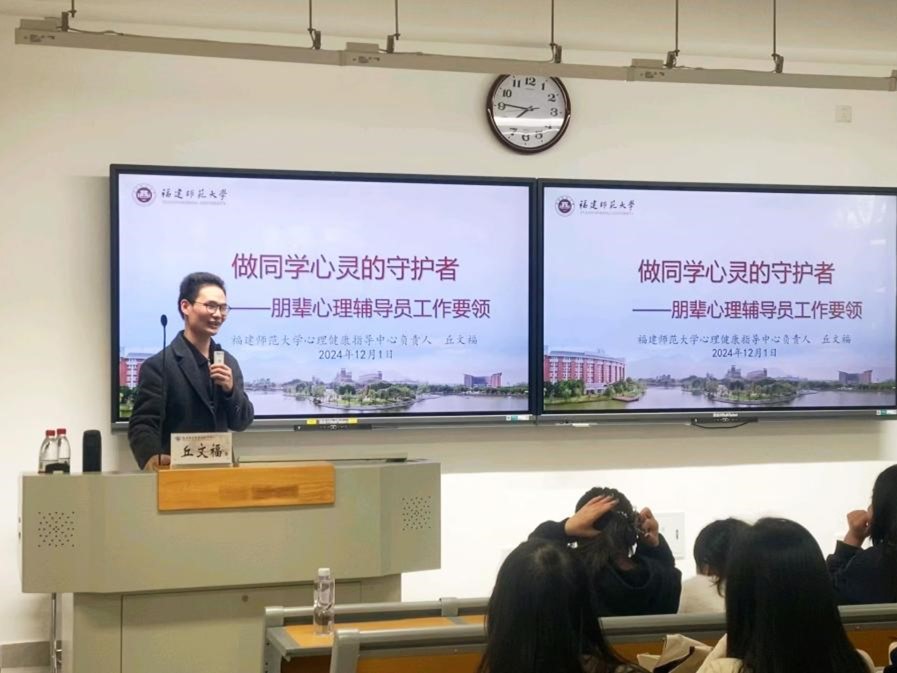為提升我院師生的心理健康水平,全面增強大學生群體對心理危機的認識,并有效提升朋輩間相互支持與心理干預的實際能力,護理學院學生第三黨支部聯合護心苑于2024年12月1日下午舉辦了一場精彩紛呈的心理健康講座。此次講座特別邀請了福建師范大學心理健康指導中心主任丘文福老師老師主講,重點圍繞“心理危機的概念”、“朋輩心理幫扶的技巧”、“心護未來”三個方面展開,希望能通過這場講座更好地引導學生健康成長。
