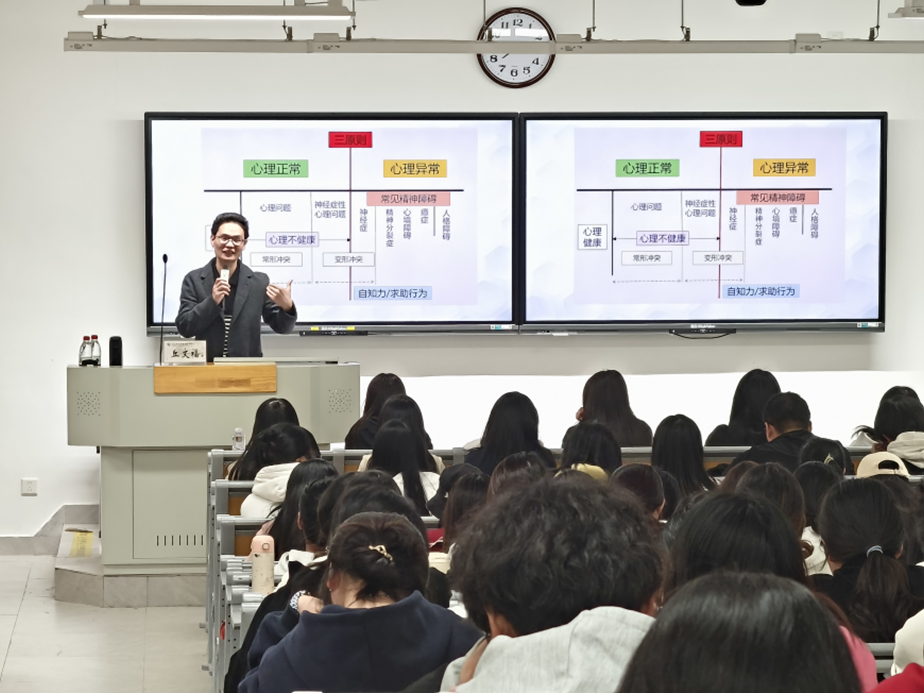 講座開始,丘文福老師通過生動的案例和深入淺出的講解,向同學們介紹了心理危機的概念、種類以及基本特點。其中,他強調了心理危機是指個體在遭遇重大心理打擊或糟糕境遇時,自身無法有效應對而引起的心理失衡或危險狀態。
