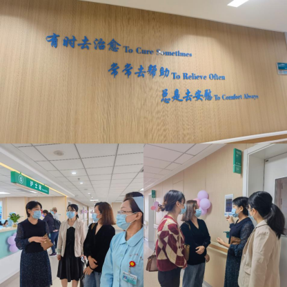 交流會開始前,陳庚主任帶領大家到病房進行實地走訪,新病房信息化及環境設置上為患者提供極大便利,針對夜班護士人手少、老年患者及其他需要幫助的患者經常找不到護士的情況,病房安裝了護士定位系統幫助患者及時尋求護士的幫助。能站在患者的角度,思考患者的需求并努力改進,為患者謀求福祉,處處不提人文,卻處處是人文。