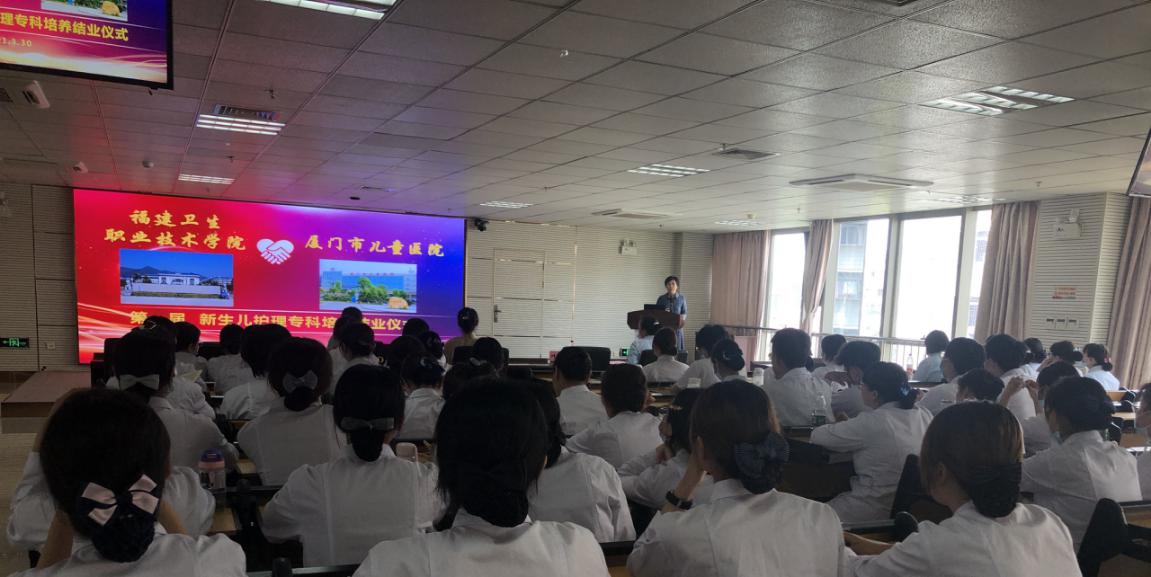 2021年3月30日,我校與廈門市兒童醫(yī)院校企合作班首屆新生兒護(hù)理專科培養(yǎng)課程結(jié)業(yè)證書頒發(fā)儀式在廈門市兒童醫(yī)院舉行。廈門市兒童醫(yī)院科教科張敏主任、護(hù)理部葉茹明副主任,我校護(hù)理學(xué)院龔海蓉院長、輔導(dǎo)員盧楨妤老師,以及合作班師生參加頒發(fā)儀式。頒發(fā)儀式由葉茹明主持。