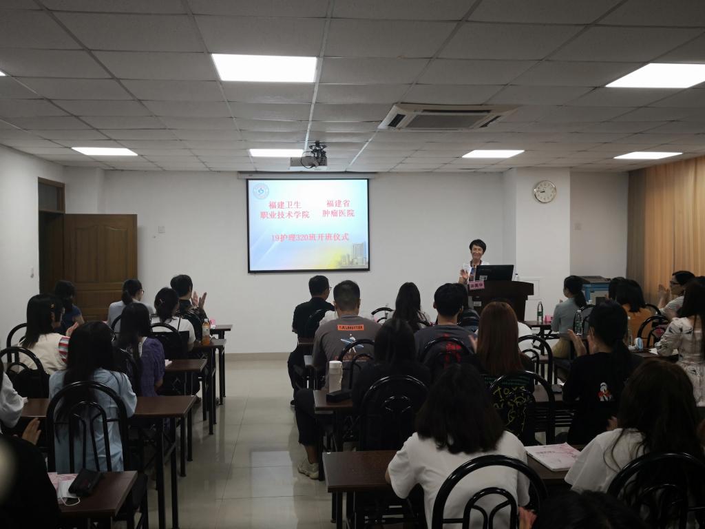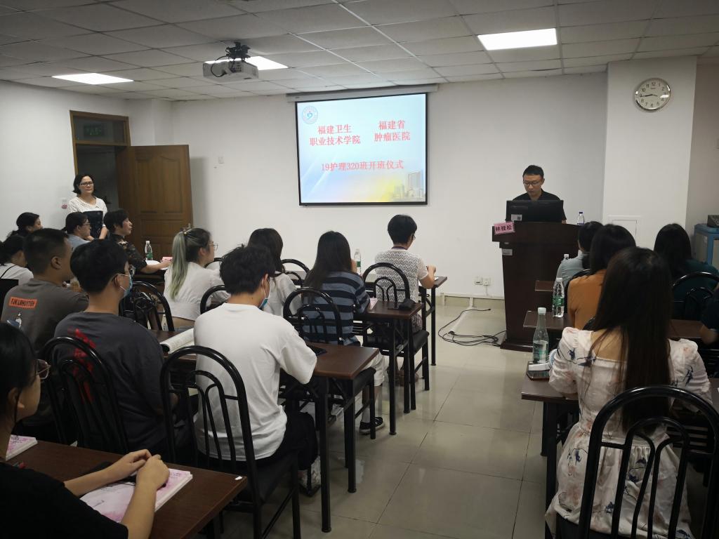 9月7日,我院與省腫瘤醫院聯合開辦的2019級護理系專業省腫瘤醫院校企合作班在省腫瘤醫院正式開班,省腫瘤醫院護理部吳美華副主任、陳奇鴻督導兼該合作班班主任、各科室護士長以及我院護理系黨總支副書記林桂松、輔導員李曉佳老師參加了開班儀式。