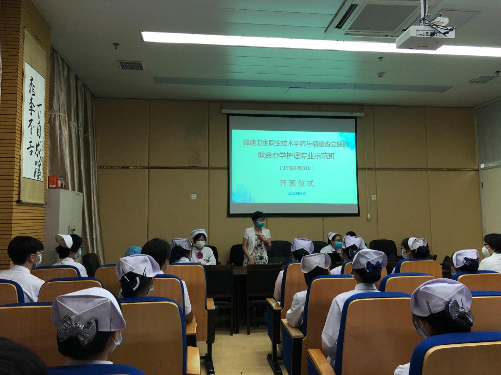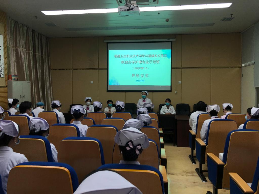 9月7日,我院與省立醫院聯合開辦的2019級護理系專業省立醫院校企合作班在省立醫院正式開班,省立醫院護理部副主任金爽老師、班主任穆艷老師、各教研室主任、帶老師代表以及我院護理系黨總支書記謝濤等參加了開班儀式。