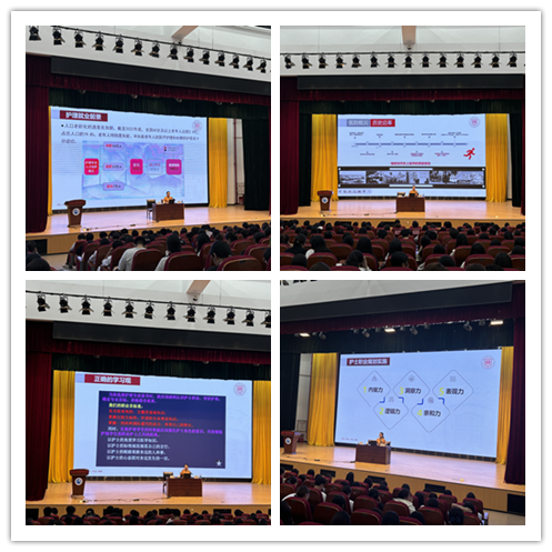 陳鳳翔主任從護(hù)理就業(yè)前景、護(hù)士職業(yè)生涯規(guī)劃、護(hù)士就業(yè)方向評(píng)估、護(hù)士職業(yè)目標(biāo)設(shè)定、護(hù)士職業(yè)規(guī)劃實(shí)施5個(gè)方面展開(kāi)闡述。她通過(guò)引經(jīng)據(jù)典解釋了護(hù)士的定義及角色,并結(jié)合醫(yī)院臨床工作實(shí)際和自身豐富的工作經(jīng)驗(yàn)向?qū)W生介紹了護(hù)士職業(yè)生涯規(guī)劃和目標(biāo)設(shè)定,最后通過(guò)生動(dòng)有趣的切身經(jīng)歷為學(xué)生提供職業(yè)規(guī)劃實(shí)施的建議,將現(xiàn)場(chǎng)氣氛推到高潮。這些理論知識(shí)對(duì)護(hù)理、助產(chǎn)專(zhuān)業(yè)學(xué)生的專(zhuān)業(yè)認(rèn)知提升、職業(yè)意識(shí)培養(yǎng)等都具有重要意義。