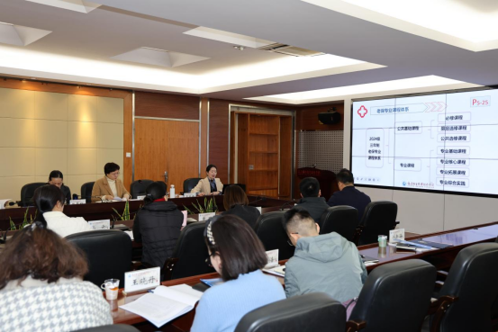 護理學院院長肖春秀、老年保健與管理專業帶頭人吳美丹,分別介紹了護理學院、老年保健與管理專業的發展情況,并對人才培養方案修訂情況進行說明。