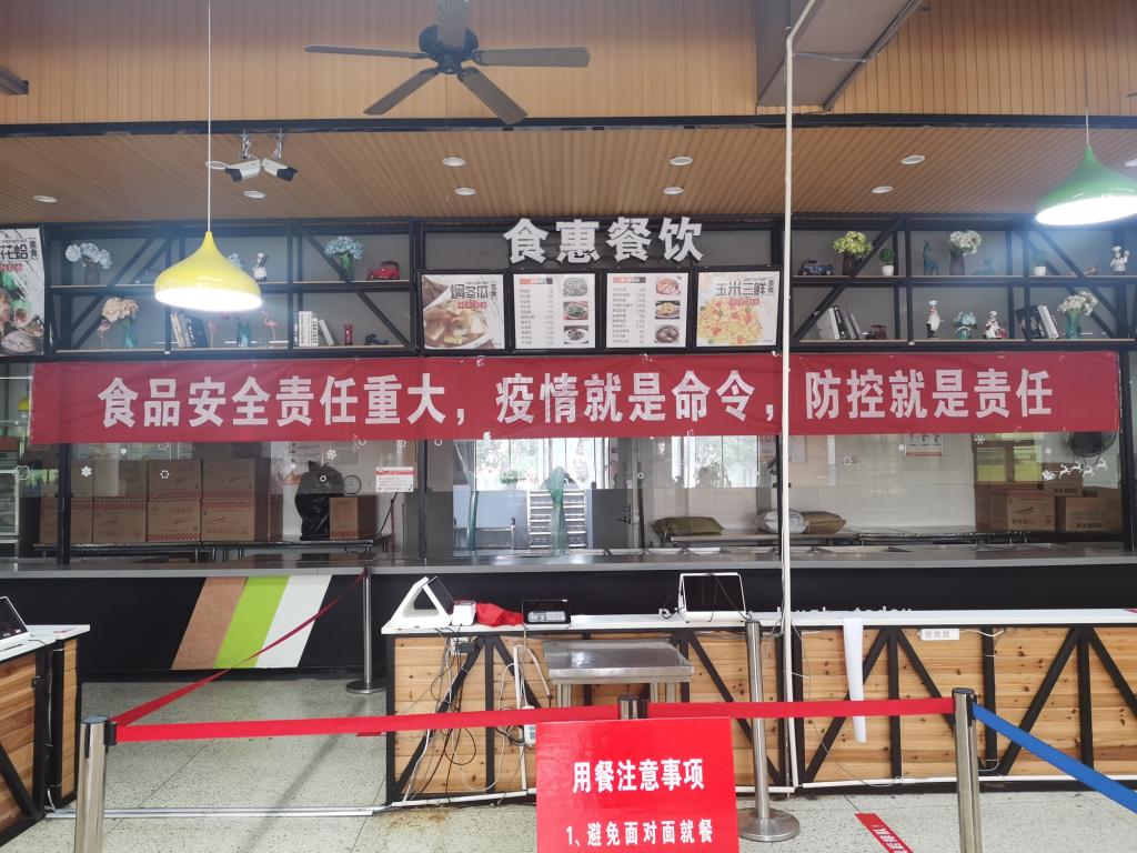 為筑牢食品安全“防線”,為開學(xué)以后安全供餐提供保障,后勤管理處未雨綢繆,周密部署防疫期間食堂供餐防護準(zhǔn)備工作,認(rèn)真做好食堂供餐防護物資儲備和環(huán)境消殺,精心布置用餐區(qū),設(shè)置指示標(biāo)識、引導(dǎo)線、桌面提示語等,詳細(xì)制定防疫期間食堂供餐方案并組織員工開展演練。演練內(nèi)容包括洗手、排隊、取餐、入座、用餐、會收餐盤、離場等流程。