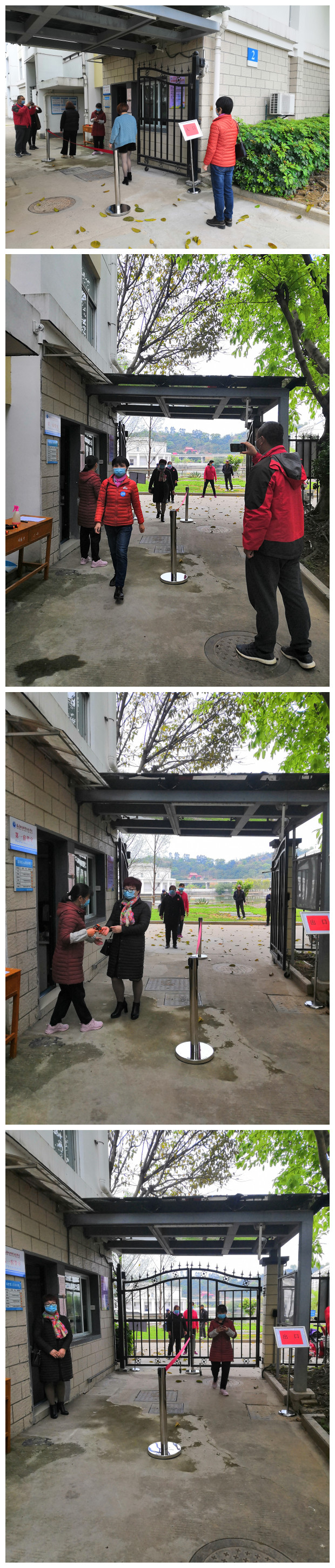 演練場景為學生進入宿舍區測量體溫及體溫異常應急處置。后勤管理處葉文偉副處長對參與演練的物業宿管人員做動員講話,強調宿舍區防控工作要點及防控演練的重要性。接著物業現場管理經理對演練卡點、流程做了具體要求和安排。演練模擬學生返回宿舍前,在宿舍區入口有序排成一列縱隊,并保持1米以上間距,宿管員在入口處逐個測量體溫。體溫正常的“同學”允許進入;發現體溫高于37.2℃的“同學”,迅速關閉宿舍區鐵欄桿大門,對其就地隔離,并馬上報告物業現場管理經理,由物業現場管理經理上報學校進行進一步檢查。