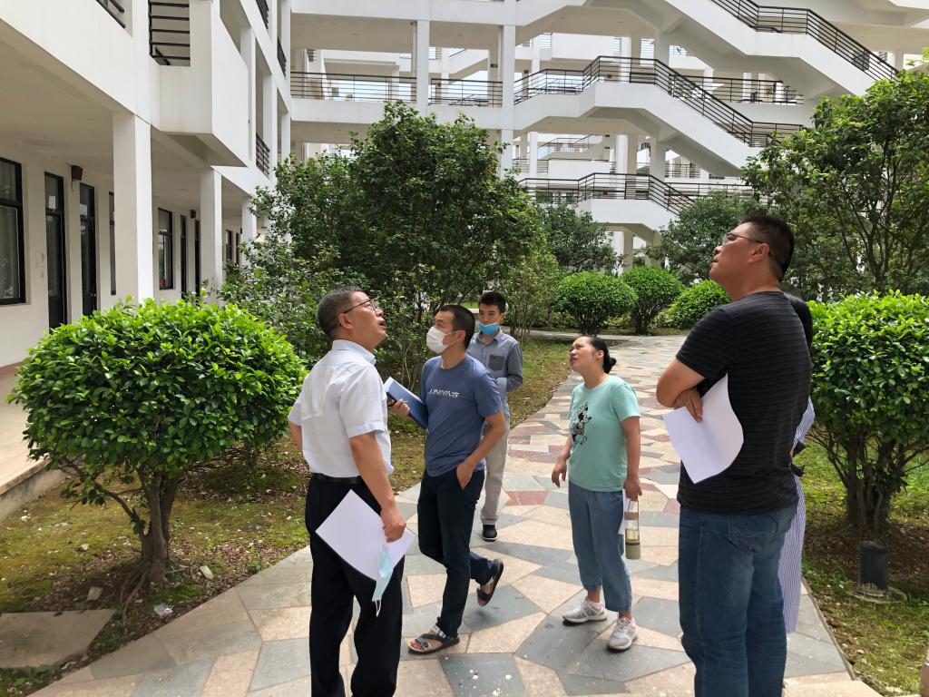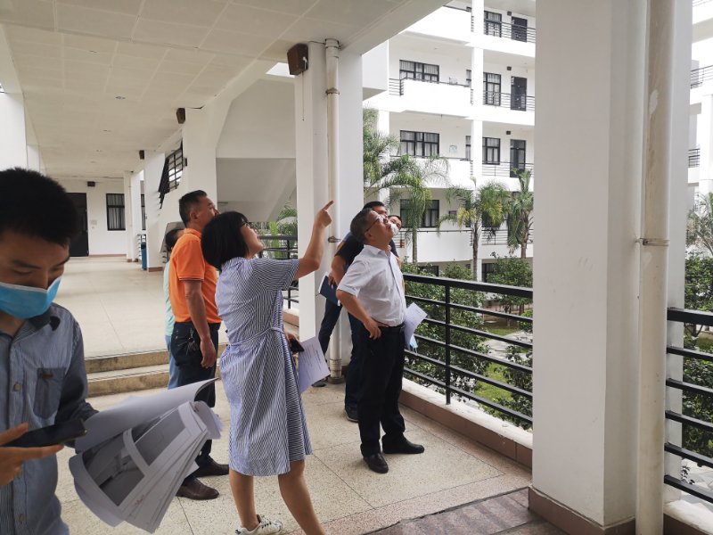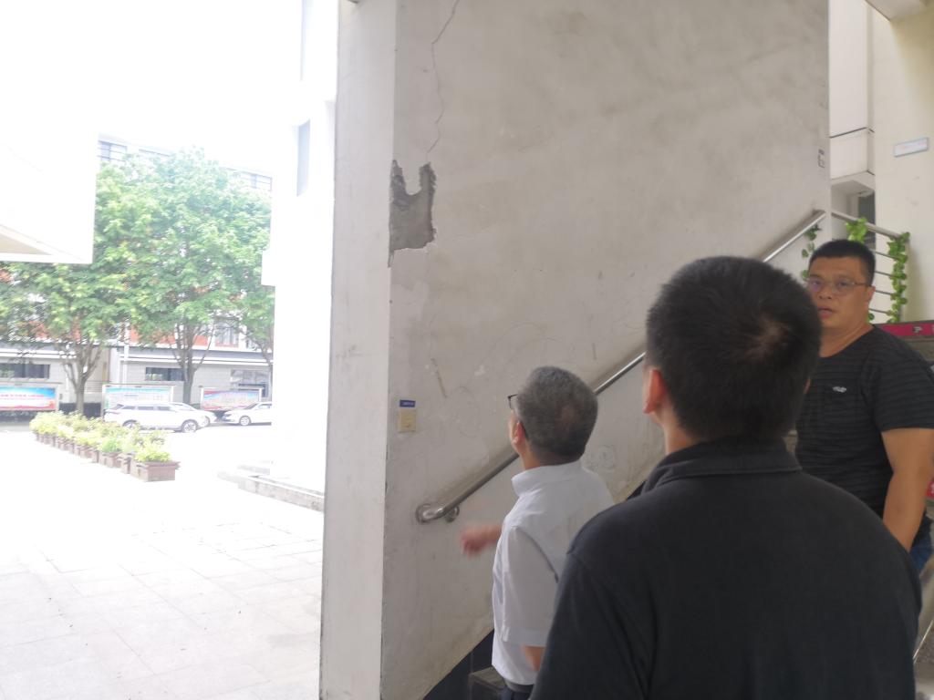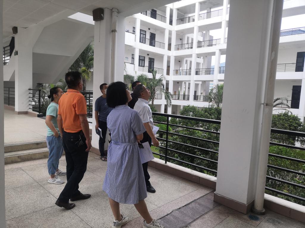 5月29日,陳貞健副院長帶領后勤管理處人員對各部門報告的疑似房屋結構安全隱患進行現場復查。