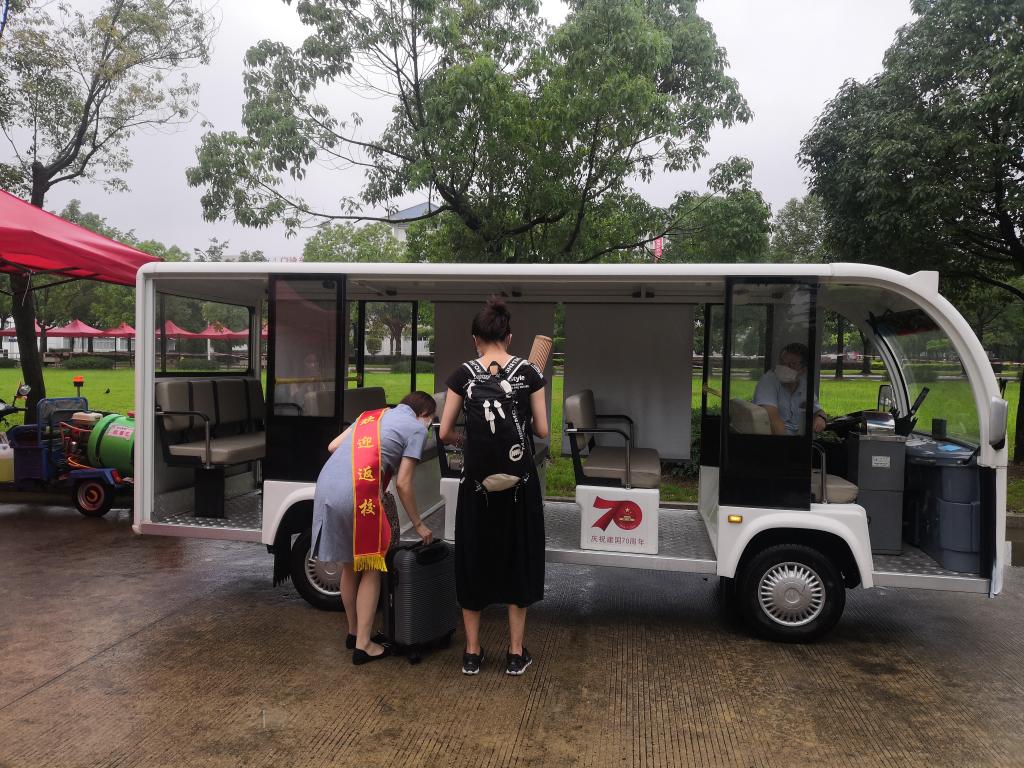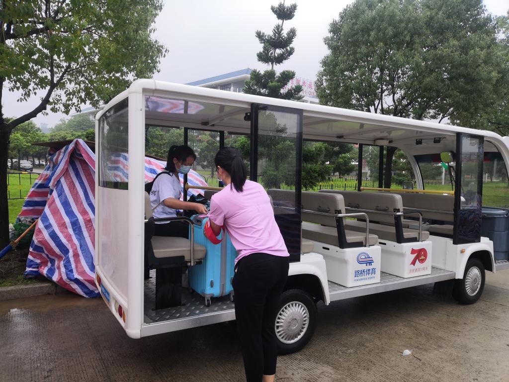 五是為學生提供便利生活服務。學生返校前幫助學生晾曬被褥,整理宿舍擺放雜亂的物品;學生返校當天安排三輛電動觀光車將學生及其行李從校門口免費運送至宿舍區。