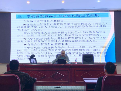 講座伊始,謝寧對《中華人民共和國食品安全法》進(jìn)行了剖析解讀,引導(dǎo)廣大師生及校園食品經(jīng)營單位提升學(xué)法、知法、守法、用法意識,切實(shí)增強(qiáng)做好食品安全工作的責(zé)任感和使命感。隨后,他結(jié)合校園食品安全實(shí)際,對學(xué)校食堂及學(xué)校食品經(jīng)營單位各環(huán)節(jié)涉及到的食品安全問題進(jìn)行一一講解,并明晰了食堂監(jiān)管人員的工作職責(zé)及考核要求,強(qiáng)化食品安全意識,防范食品安全風(fēng)險(xiǎn),統(tǒng)籌做好食品安全保障工作。最后,謝寧提醒廣大師生在增強(qiáng)自我防范意識的同時,共同參與食品安全的監(jiān)管工作,樹立“食品安全,人人有責(zé)”的思想,也進(jìn)一步強(qiáng)化校園食品經(jīng)營單位的主體責(zé)任意識,筑牢食品安全防護(hù)網(wǎng),把好最后一道“入口關(guān)”。