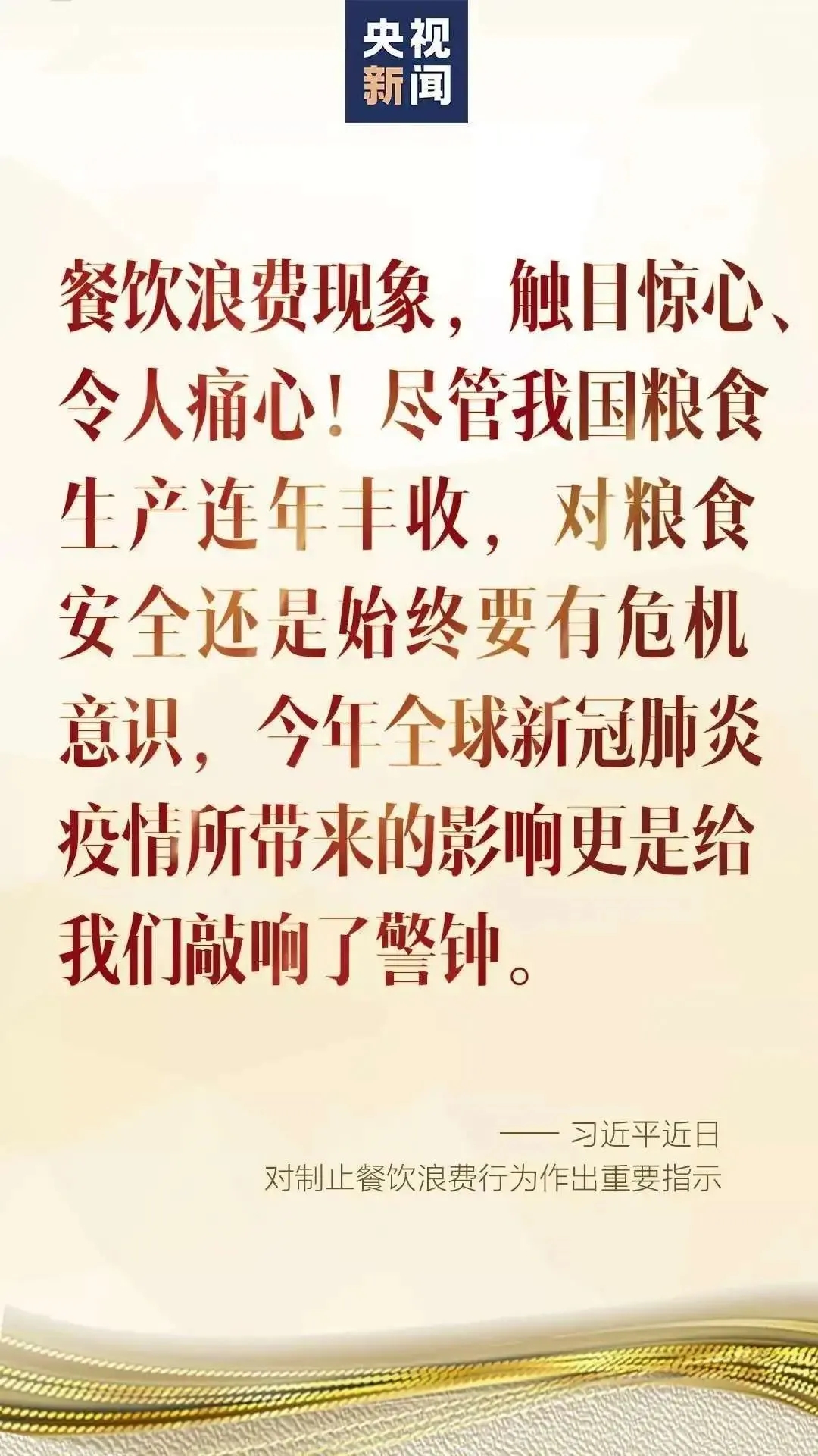 “成由節(jié)儉敗由奢”,愛護糧食,反對浪費貴在平時,重在堅持。同學們,讓我們積極行動起來,堅決制止餐飲浪費行為,切實培養(yǎng)節(jié)約習慣,大力弘揚儉以養(yǎng)德、珍惜節(jié)約糧食的優(yōu)秀文化,讓節(jié)約糧食成為同學們的自覺行動。