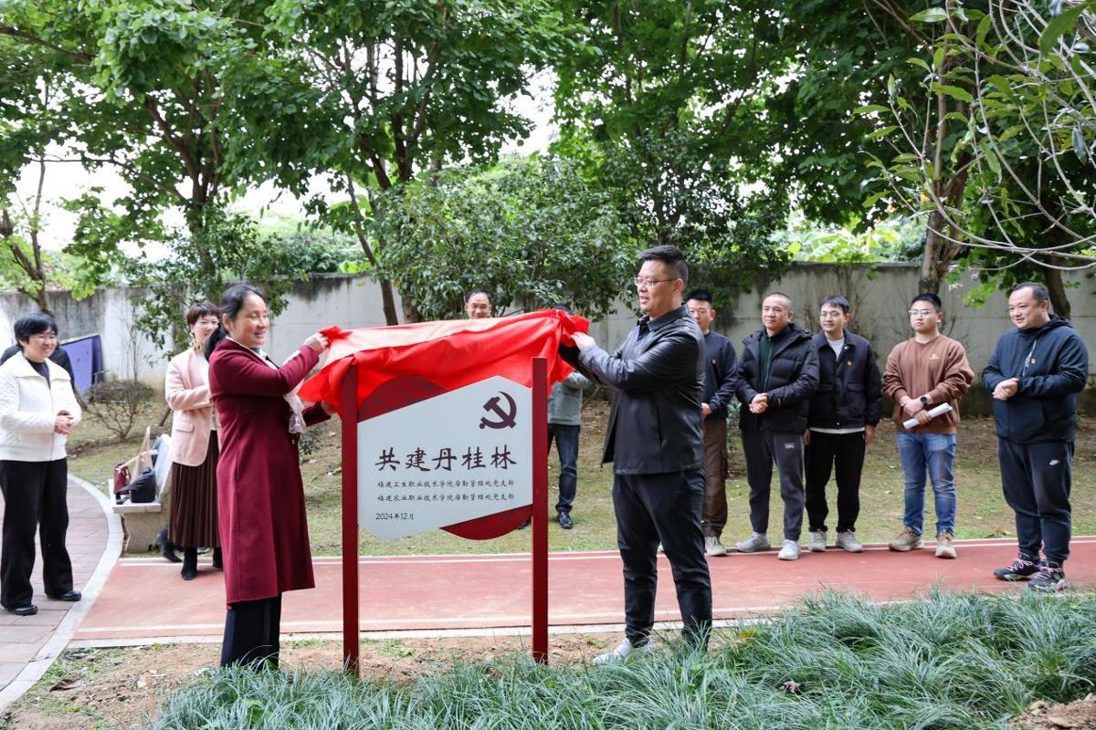 儀式上,我校后勤管理處黨支部書記王鈍銳簡要介紹了兩校后勤管理處黨支部開展支部結對共建的情況,以此為契機將福建農業職業技術學院部分丹桂等苗木“移居”至我校校園步道以及各宿舍園區,為我校校園景色增添新的色彩,隨后,院直機關黨總支書記艾松軍與福建農業職業技術學院后勤管理處黨支部書記黃曉梅共同為支部共建“丹桂林”揭牌。
