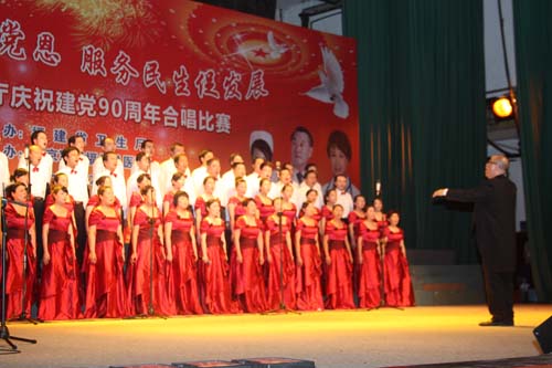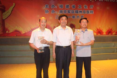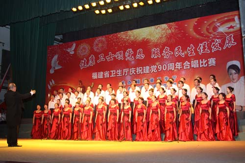 由省衛生廳主辦的慶祝中國共產黨成立90周年“健康衛士頌黨恩 服務民生促發展”合唱比賽,6月14日下午在福州總院禮堂隆重舉行,共有省屬醫療衛生單位13個團隊參加了比賽,我院領導和教職工60人組成的合唱團,帶著《在燦爛陽光下》、《七律·人民解放軍占領南京》兩首曲目、帶著飽滿的熱情和良好的精神風貌參加了比賽,榮獲二等獎。