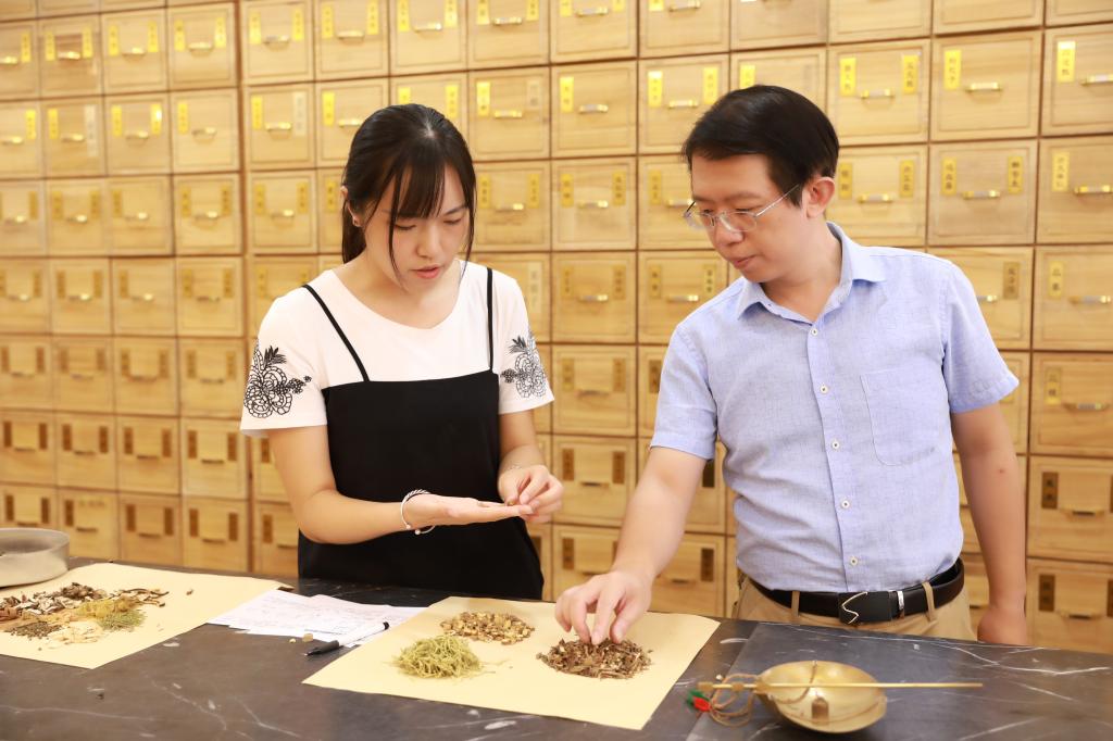 支部書記何舒瀾與組織委員陳鈺赴藥店挑選并采購優質中藥材,為制備防疫香包精選原料。