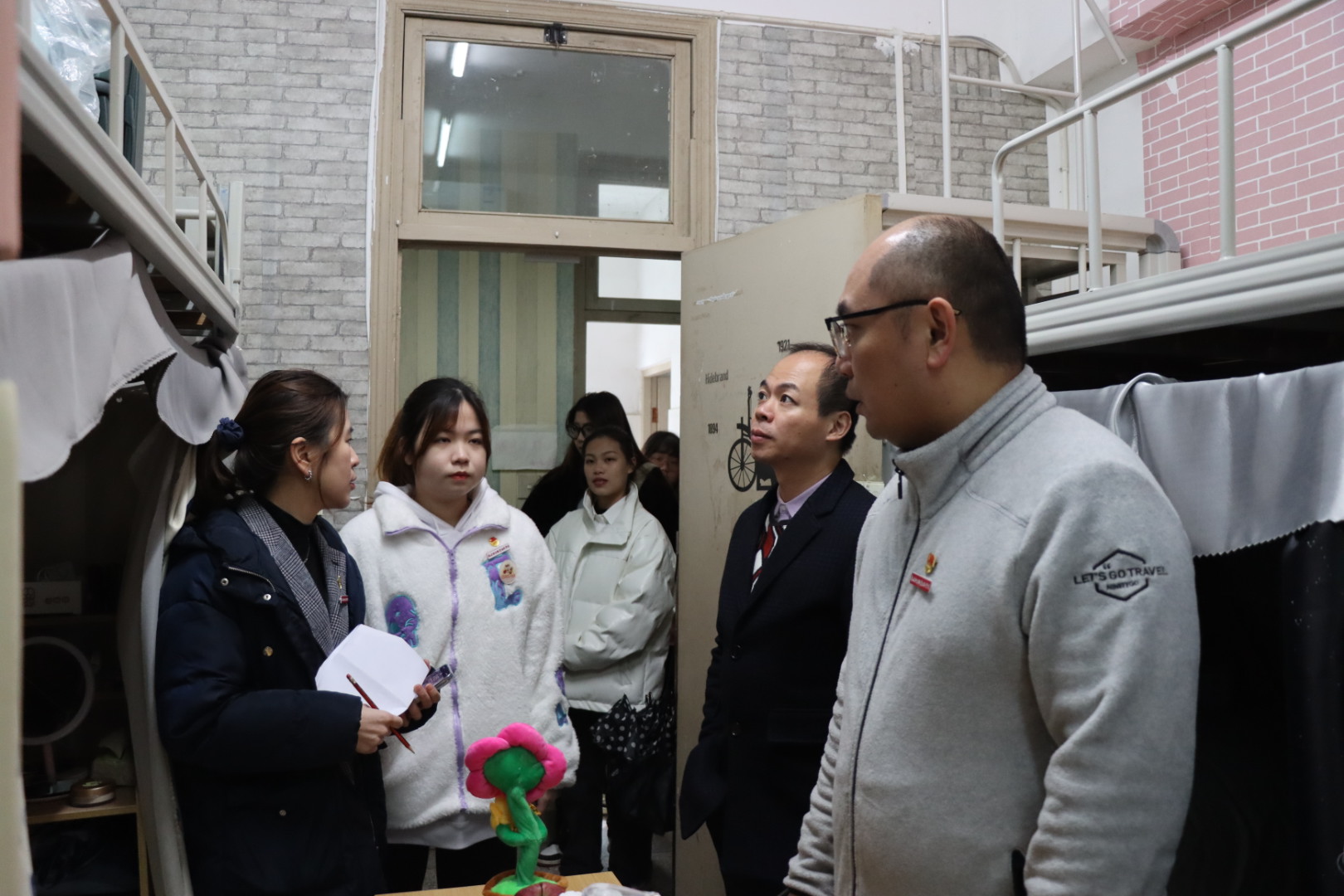 黨員先鋒見行動 安全教育在宿舍。全體黨員們重點檢查了宿舍衛生、用電安全以及防火、防盜等方面,并對宿舍規范、宿舍安全等問題進行宣傳教育,提醒同學注意宿舍用電安全,遵守宿舍規范。