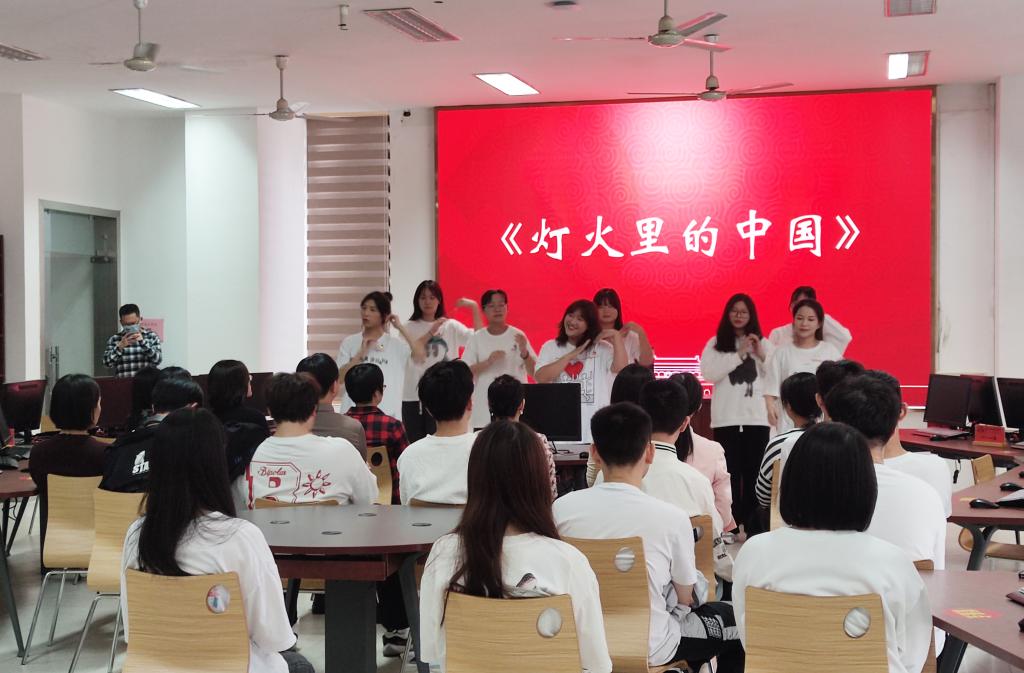 “燈火燦爛的中國夢,燈火蕩漾著心中的歌”。在《燈火里的中國》的悠揚歌聲中,學生整齊劃一的手勢舞表演,贊頌新時代安寧祥和的燈火中國。燈火里的中國,人民有信仰,國家有力量。學生生動的表演讓在場的每位師生黨員都感受到祖國繁榮昌盛、人民幸福生活,大家由衷為祖國的發展與強大感到光榮與自豪。