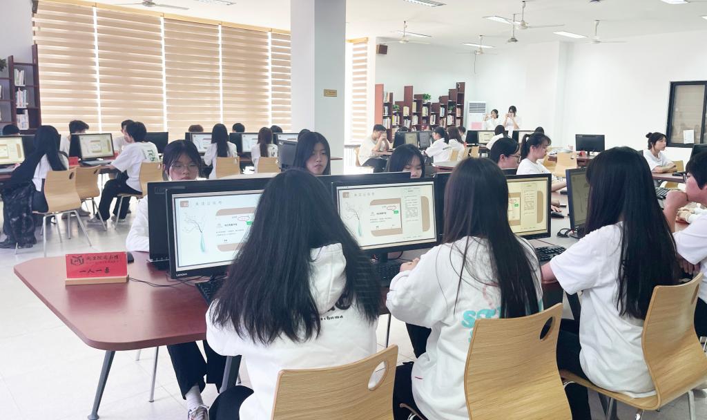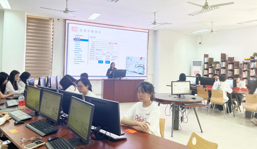 圖書館黨支部教師黨員張麗萍向現場的學生講述圖書館的書本借閱方式、讀書閱覽以及了解閩衛院圖書館公眾號上微事咨詢等內容,幫助學生熟悉圖書館資源及其利用方法,全面提高信息素養水平,將素養教育同社會主義核心價值觀教育、中華優秀傳統文化教育相互融合,幫助和指導學生在課堂學習和社會實踐的過程中樹立正確信息素養意識,成為新時代信息素養文明建設的參與者、實踐者、推動者和創造者。