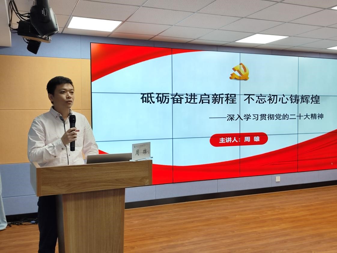 周雄指出,黨的二十大是在全黨全國各族人民邁上全面建設社會主義現代化國家新征程、向第二個百年奮斗目標進軍的關鍵時刻召開的一次十分重要的大會。我們要更加緊密地團結在以習近平同志為核心的黨中央周圍,高舉中國特色社會主義偉大旗幟,全面貫徹習近平新時代中國特色社會主義思想,深刻領悟“兩個確立”的決定性意義,增強“四個意識”、堅定“四個自信”、做到“兩個維護”,弘揚偉大建黨精神,自信自強、守正創新,踔厲奮發、勇毅前行,為全面建設社會主義現代化國家、全面推進中華民族偉大復興而團結奮斗。