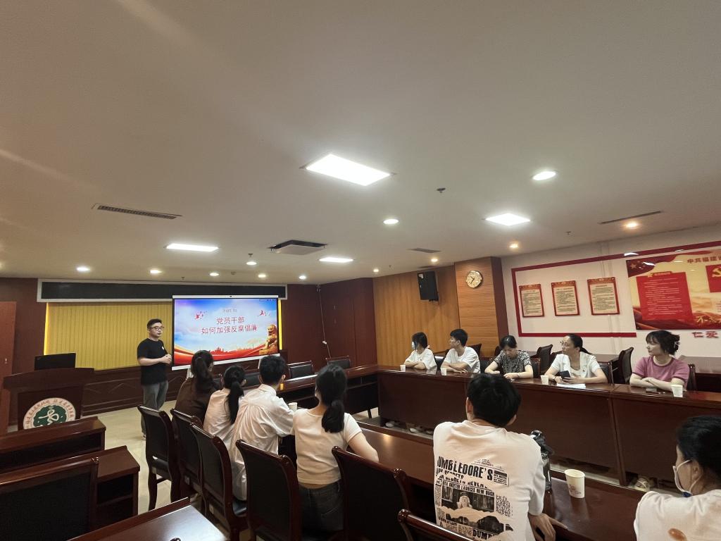 理論學習之后,參會人員共同聆聽了由醫學院學生第二黨支部紀檢委員羅嘉主講的黨課《筑牢拒腐防線,永葆清廉本色》。羅嘉從增強自律意識、反腐倡廉警示教育、如何加強廉潔自律三個方面進行了黨課教育,強調黨員要深入學習貫徹習近平總書記關于全面從嚴治黨的重要論述,不斷推動黨員增強廉潔自律內在自覺,持續營造風清氣正的良好環境,引導學生黨員加強黨性修養,不踩紅線,做到初心如磐,在日后的工作崗位上勤勉有為。