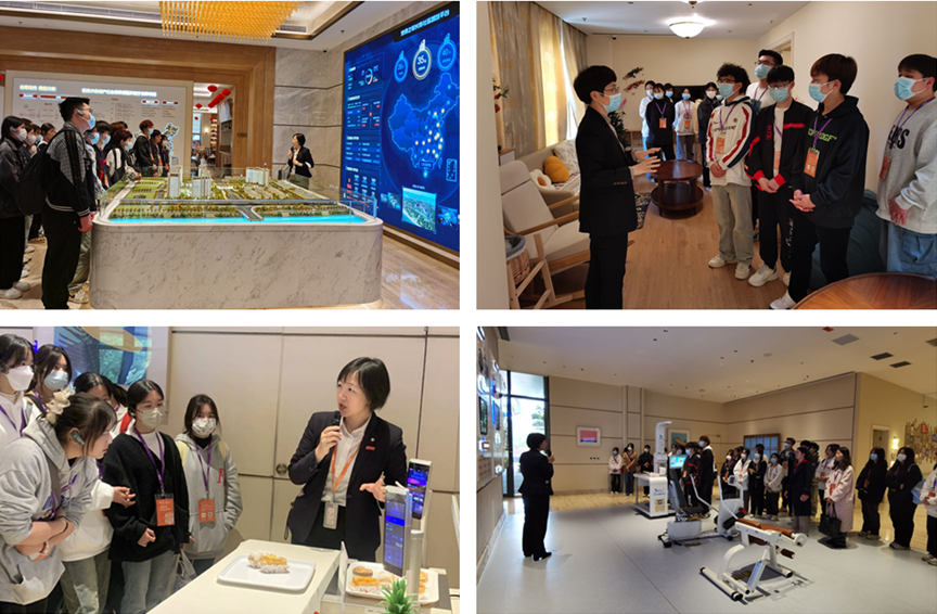 在泰康之家人力資源部的熱情接待下,我校師生參觀了泰康養老機構體驗館,深入了解泰康之家的養老觀念、醫養融合、科技養老以及新養老生活的七大需求滿足方式等。