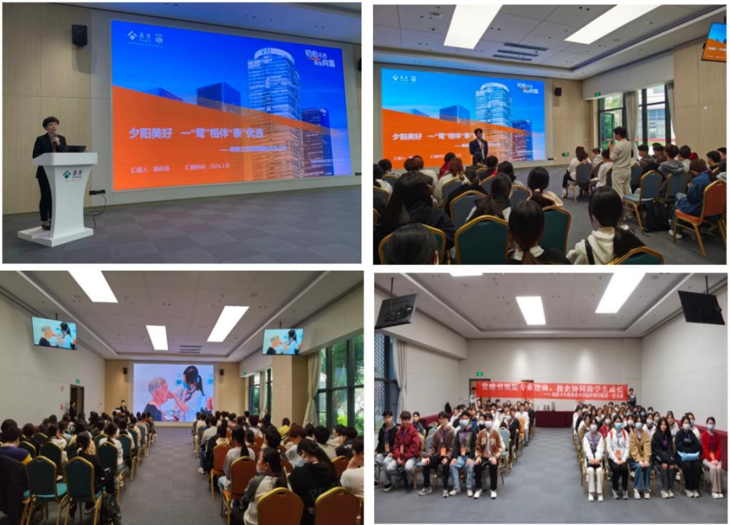 下午,泰康之家?鷺園養老服務及康復醫院有限公司副院長韓秋英向大家詳細介紹公司的成立背景、老年人在園區的日常生活感受、泰康用人需求及崗位設置。隨后,一畢業就在泰康之家?鷺園就業的老年保健與管理專業首屆畢業生蔡俊渠向大家分享了他的從業感受,鼓勵學弟學妹們認真做好學業和未來職業規劃,一起攜手為養老事業貢獻青春力量。