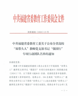 近日,福建省委教育工委公布全省高校“雙帶頭人”教師黨支部書記“強國行”專項行動團隊名單,經高校黨委申報推薦、省委教育工委審核研究、結果公示,我校護理學院第一黨支部和藥學院第一黨支部入選團隊名單。