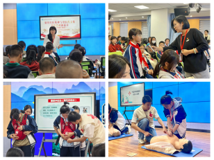 結(jié)繩訓(xùn)練、火災(zāi)模擬逃生、地震防御……大家在紅十字生命教育體驗(yàn)學(xué)堂通過(guò)互動(dòng)展示、模擬體驗(yàn)等形式,深入了解了一系列生命科學(xué)知識(shí),深化了對(duì)生命的敬畏心理。隨后,與會(huì)師生接受心肺復(fù)蘇術(shù)、創(chuàng)傷包扎、AED等急救知識(shí)技能培訓(xùn),在實(shí)操演練中增強(qiáng)應(yīng)對(duì)突發(fā)事件的能力,深切感悟到“人道、博愛(ài)、奉獻(xiàn)”的紅十字會(huì)精神。這堂立足于生命健康教育的“大思政課”,凸顯了體驗(yàn)式、沉浸式的實(shí)踐教育教學(xué),彌補(bǔ)了“思政小課堂”的不足,為大中小學(xué)思政課一體化建設(shè)提供了獨(dú)特資源和特色模式的參照經(jīng)驗(yàn)。