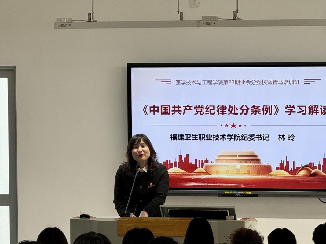 儀式后,林玲以《中國共產(chǎn)黨紀(jì)律處分條例》學(xué)習(xí)解讀為主題,為學(xué)員們上培訓(xùn)班第一講黨課。黨課從《條例》的歷史沿革和修訂特點展開,結(jié)合醫(yī)療反腐、網(wǎng)絡(luò)謠言等方面警示案例,為學(xué)員們深入解讀《條例》。