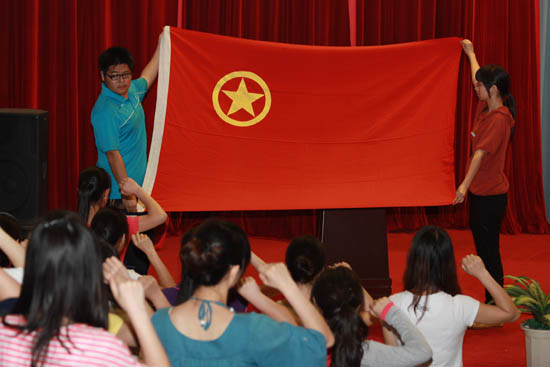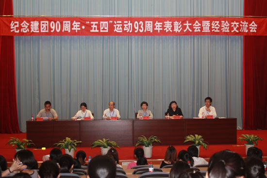 受表彰學生代表先后上臺做交流發言,他們分別就其在過去的一年里的學習生活中取得的成績和不足作出總結。而后,舉行了新團員入團宣誓儀式,并宣讀了紀念建團90周年倡議書。