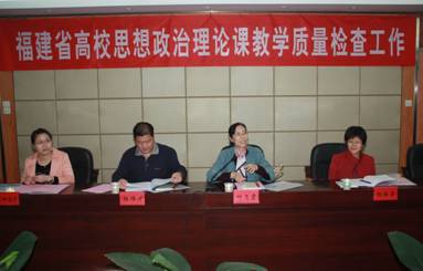 2012年11月22日下午,由福建農(nóng)林大學(xué)馬克思主義學(xué)院院長(zhǎng)葉飛霞教授任組長(zhǎng),福建工程學(xué)院思政部主任楊偉才教授、福建師范大學(xué)馬克思主義學(xué)院院長(zhǎng)助理?xiàng)盍窒愀苯淌凇⑹∥逃の麄鞑繗W陽(yáng)迪莎主任科員任組員的檢查組一行4人蒞臨我院,對(duì)我院思想政治理論課教學(xué)質(zhì)量進(jìn)行檢查指導(dǎo)。學(xué)院黨委陳雄副書(shū)記、廖偉堅(jiān)副院長(zhǎng)、黃開(kāi)良副院長(zhǎng)、魏立娜副院長(zhǎng),黨委工作部、教務(wù)處、學(xué)生工作處、人事處、科研處、財(cái)務(wù)處、團(tuán)委、各系部黨總支等相關(guān)職能部門(mén)負(fù)責(zé)人,思想政治理論課教研部黨政領(lǐng)導(dǎo)和全體思想政治理論課教師參加了匯報(bào)會(huì)和專(zhuān)家反饋會(huì)。會(huì)議由廖偉堅(jiān)副院長(zhǎng)主持。