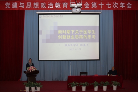 有8位老師進行了年會論文交流。附屬醫院錢新春書記作了《學習“梅奧”文化,落實“三改兩推一評議”》論文交流;人事處張夢全老師作了《學院師德建設現狀調查報告》論文交流;學生工作處賴文金老師作了《福建衛生職業技術學院貧困生現狀分析與對策》論文交流;保衛處林一蘇老師作了《校園安全工作階段性防范的重要性——論新生入校初期安定穩定工作與防范》論文交流;公共基礎部丁愛芝老師作了《大學生入黨積極分子宗教信仰現狀調查與分析》論文交流;醫學技術系柯瓊鶯老師作了《高職院校學生轉專業的動因、問題及對策探究》論文交流;臨床醫學系陳盛蘭老師作了《新時期下關于醫學生創新就業思路的思考》論文交流;黨委工作部張天明老師作了《企業文化進校園校企合作育天使》論文交流。