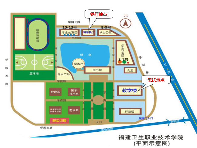 請輔導員、行政人員(崗位代碼1913-1917)考生在筆試結束之后不要離開學院,可在學院明湖食堂休息、用餐,等候面試通知(明湖食堂地點附后)。
