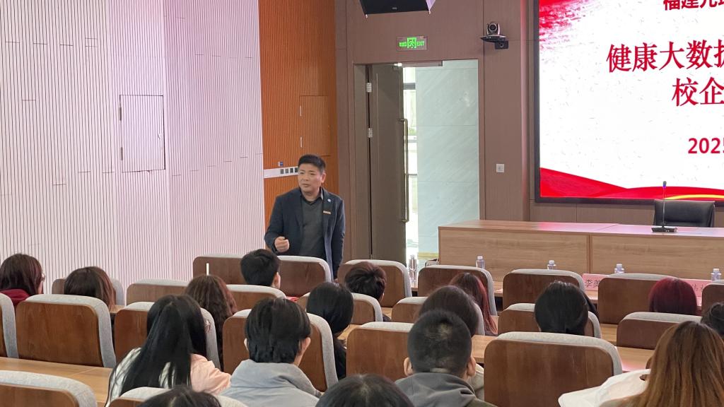 陳偉林代表公司對(duì)學(xué)校師生的到來(lái)表示熱烈歡迎,隨后介紹了福建元瑞信息科技有限公司的建設(shè)和發(fā)展情況。他表示,此次校企雙方聯(lián)合舉辦健康大數(shù)據(jù)管理與服務(wù)專業(yè)校企合作班,是企業(yè)教學(xué)體系建設(shè)的重要組成部分,也是實(shí)現(xiàn)校企協(xié)同發(fā)展,提高實(shí)踐教學(xué)水平的重要途徑。公司將全力做好各項(xiàng)服務(wù)保障工作,希望同學(xué)們能夠?qū)W有所得、學(xué)有所成。