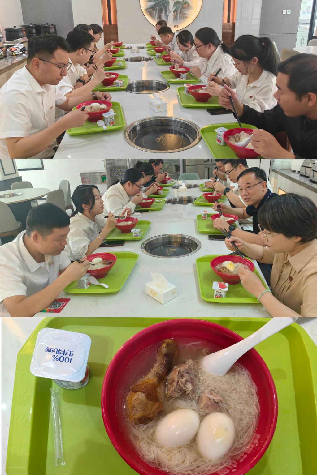 當天,我校后勤管理處還為新教師精心準備了入職“第一餐”,用傳統的福州太平面,承載著對新教師的美好祝愿。徐偉與新教師圍坐一起,一邊享用午餐,一邊聊著“家?!?,笑語聲中將人文關懷編織成育人經緯,讓新教師感受到學校大家庭的溫暖。