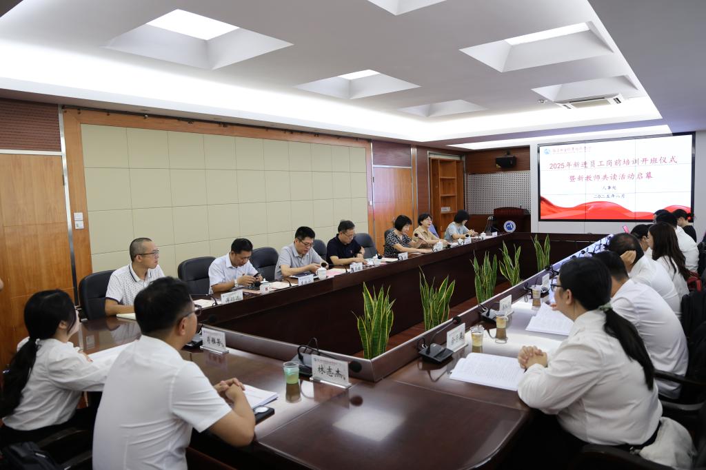 8月27日,我校2025年新入職教師崗前培訓開班儀式暨新教師共讀活動啟幕儀式在厚德樓四樓順利舉行。校長徐偉、校黨委副書記李美華及相關職能部門負責人出席儀式,全體新教師及新教師導師參加儀式,儀式由李美華主持。