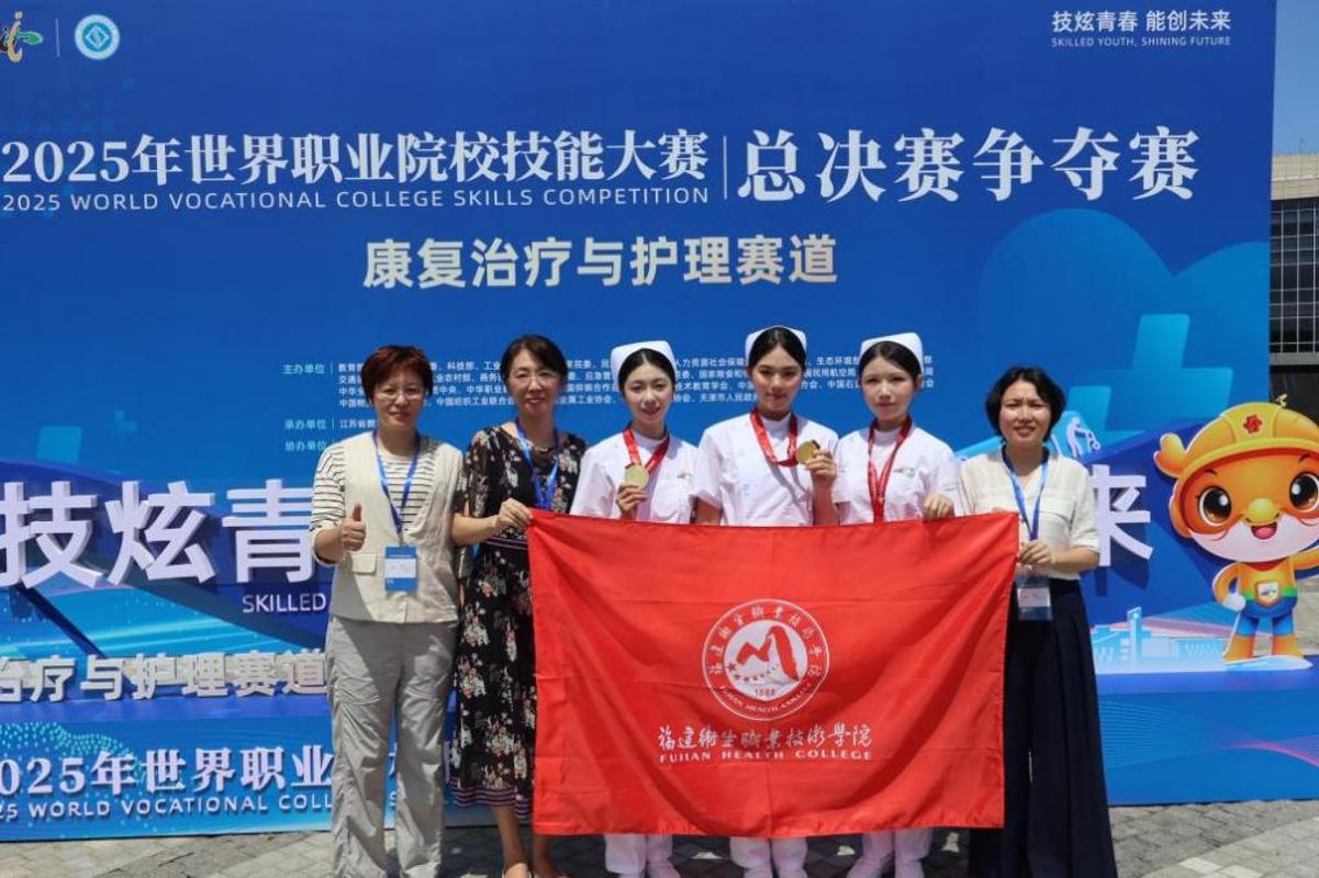 護(hù)理代表隊(duì)選手們憑借扎實(shí)的專業(yè)功底、精準(zhǔn)的溝通技巧與高效的團(tuán)隊(duì)協(xié)作,獲得康復(fù)治療與護(hù)理賽道金獎(jiǎng),這是我校及福建省在世界職業(yè)院校技能大賽總決賽醫(yī)藥衛(wèi)生領(lǐng)域的歷史性首金。