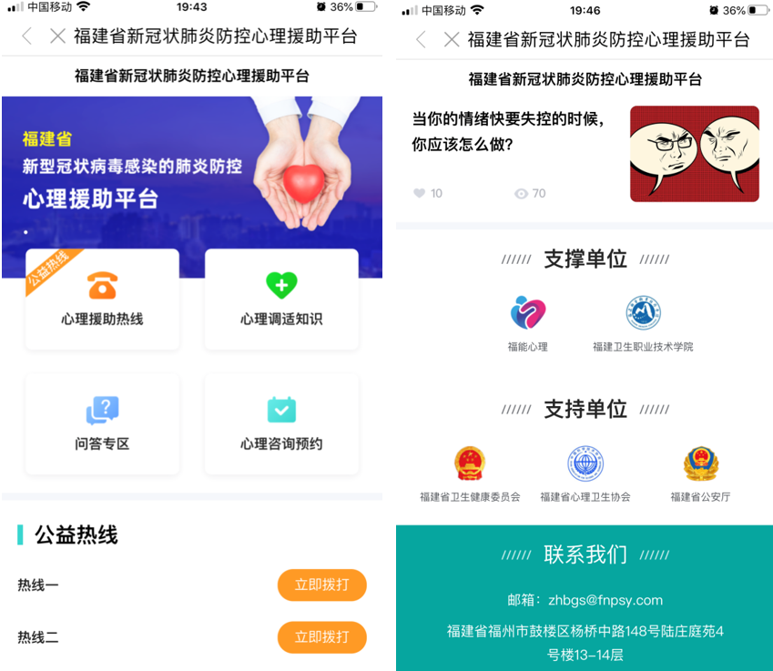 目前,該平臺也加入了由福建衛生報牽頭,福建日報、東南網、新福建等共同倡議成立的心理熱線聯盟。