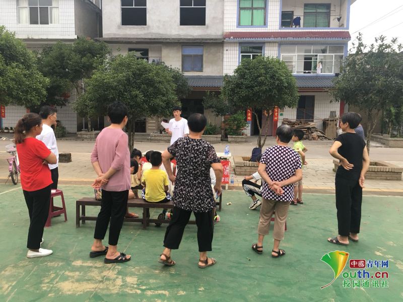 圖為志愿者在鄉村里宣講體育保健醫護常識,提高村民的自身身體素質。 中國青年網通訊員葉瑩 供