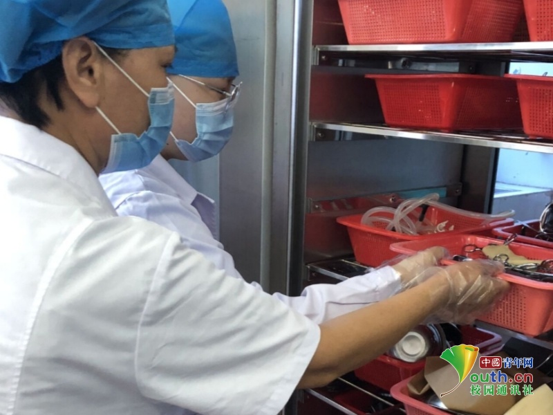 實踐團志愿者小分隊在家鄉當地衛生所的供應室見習,承擔醫療器械的清洗、包裝、消毒和供應工作。