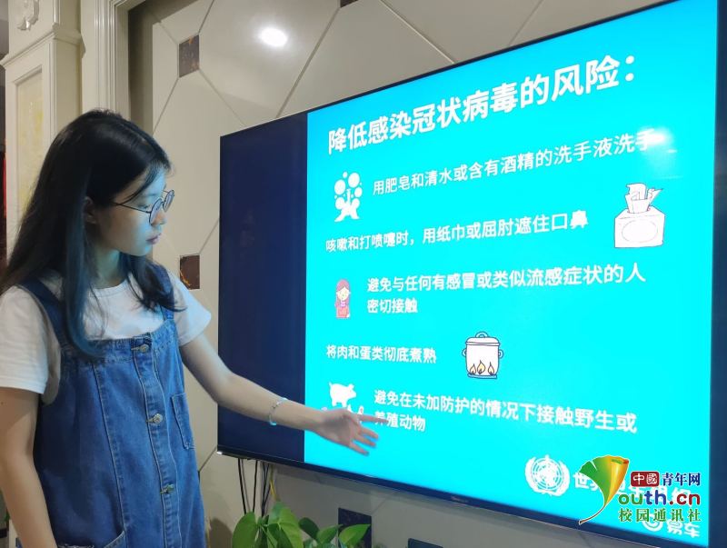圖為廖雨珊同學線上課堂講解防疫應急措施。中國青年網通訊員 曾瑾御 供圖