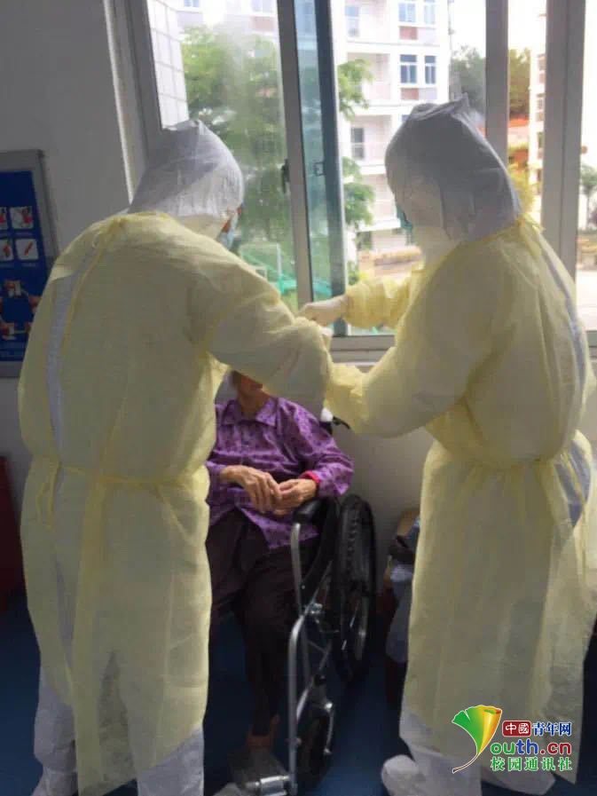 圖為鐘侶欣同學為老人進行核酸檢測采樣工作。中國青年網通訊員 曾瑾御 供圖