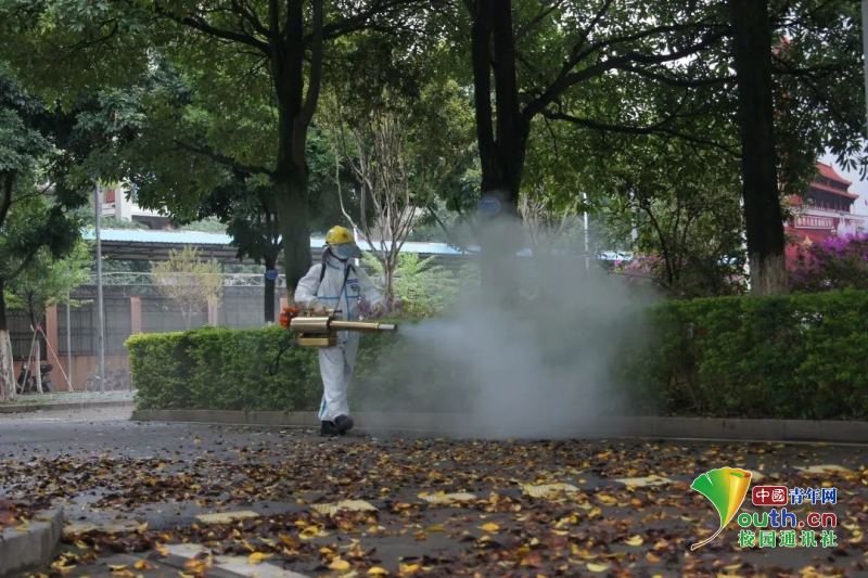 圖為曾杭同學助力高考校園參與消殺工作。中國青年網通訊員 曾瑾御 供圖