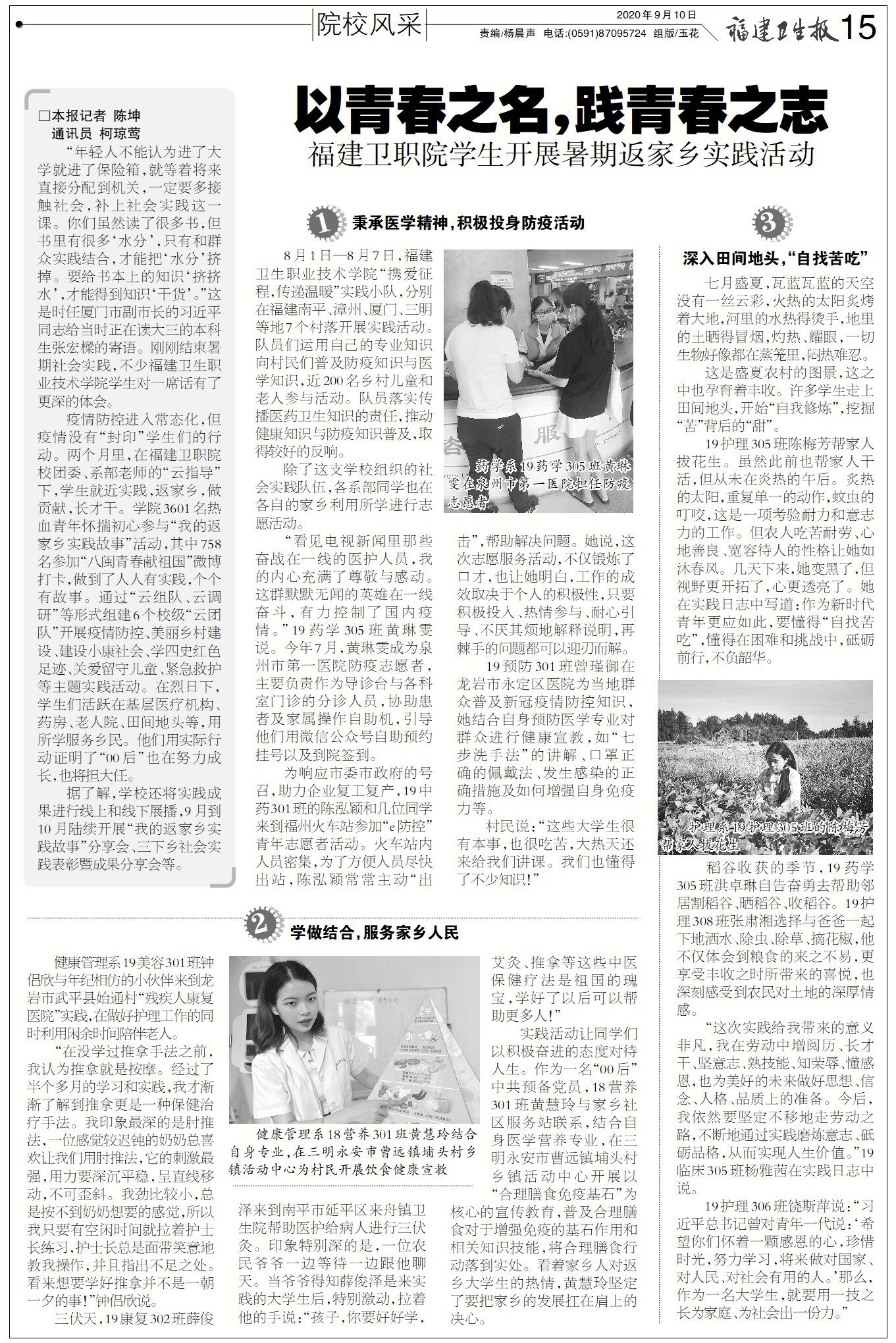 (福建衛生報 2020年9月10日 第15版 校園風采)