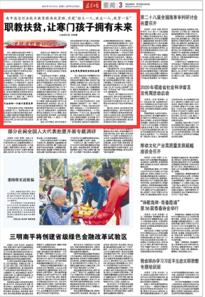 “畢業(yè)后,我們繼續(xù)關(guān)注學(xué)生們后續(xù)的成長,即時(shí)為他們提供幫助。”王金清說,今年8月,南平市扶貧開發(fā)協(xié)會和南平市婦聯(lián)發(fā)布文件,進(jìn)一步幫助學(xué)生做好獎(jiǎng)補(bǔ)資金申請和就業(yè)工作。