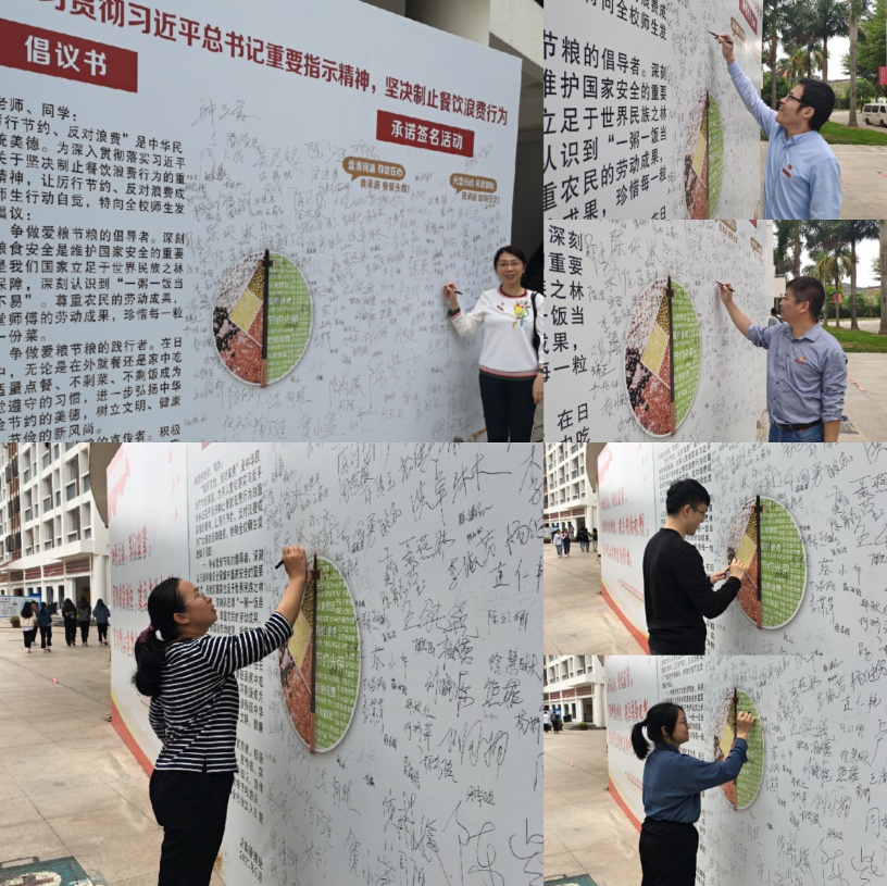 師生積極響應(yīng)習(xí)近平總書(shū)記對(duì)制止餐飲浪費(fèi)行為重要指示精神倡議,簽名承諾厲行節(jié)約珍惜糧食,用實(shí)際行動(dòng)踐行光盤(pán)。米粒雖小,尤見(jiàn)禮義廉恥;節(jié)儉事微,可助興國(guó)安邦,我們要樹(shù)立珍惜糧食的意識(shí),踐行愛(ài)惜糧食的理念。節(jié)約糧食,從我做起,從現(xiàn)在做起!