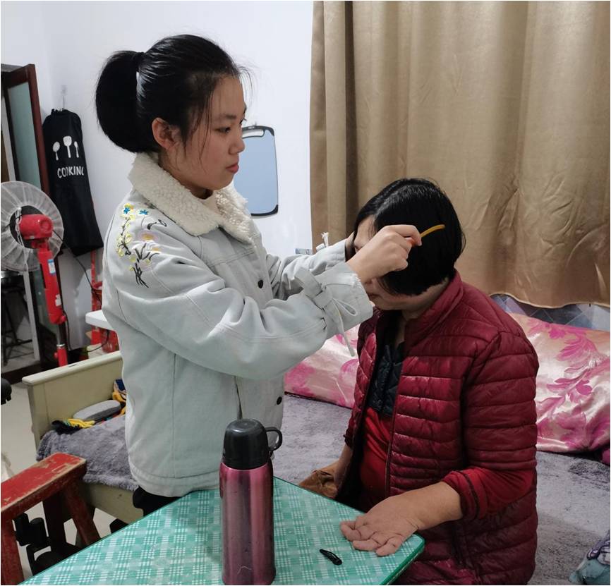 王慧正在給母親梳頭。受訪者供圖